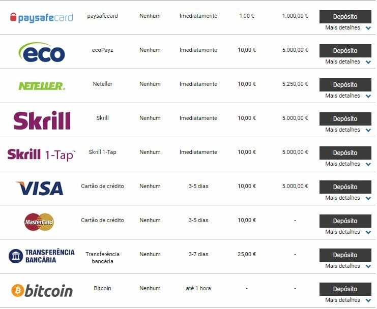Um ponto fortíssimo da casa de apostas Rivalo envolve as opções de pagamento, merecendo uma nota bastante alta aqui. Uma olhada rápida no site já nos mostra que a casa tem por objetivo oferecer a maior gama de opções de pagamento possível. As transações podem ser feitas pelas bandeiras Visa e Mastercard, transferência bancária, boleto e muitos outros meios. Não deixa de espantar que o site já aceite o Bitcoin como método de pagamento, o que pode ser considerado bastante inovador. Resumindo, se você quiser usar o site como sua casa de apostas, não terá quaisquer dificuldades em fazer seus depósitos. A casa já tem uma presença considerável em diversas redes sociais, de modo que é possível tirar dúvidas rapidamente sobre esses e outros assuntos com outros apostadores, tornando tudo mais palpável e confiável.